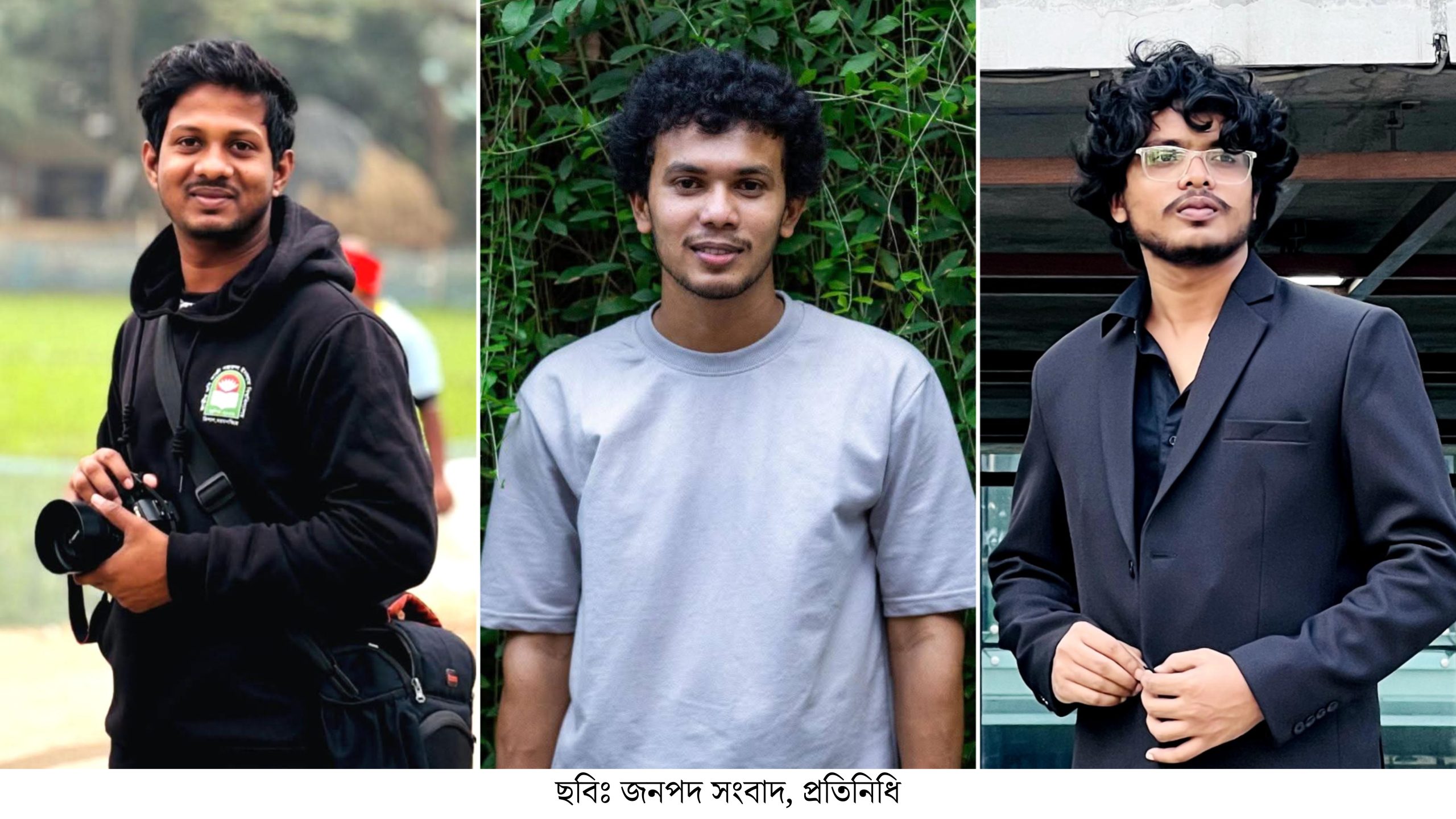 তারা হলেন দর্শন বিভাগের স্নাতকোত্তর শিক্ষার্থী মো. নওসাদ আলী, ফিল্ম এন্ড মিডিয়া স্টাডিজ বিভাগের ২০২১-২২ শিক্ষাবর্ষের শিক্ষার্থী শেখ সাকিবুর রহমান ও ২০২২-২৩ শিক্ষাবর্ষের শিক্ষার্থী আশরাফুল ইসলাম জুবায়ের।