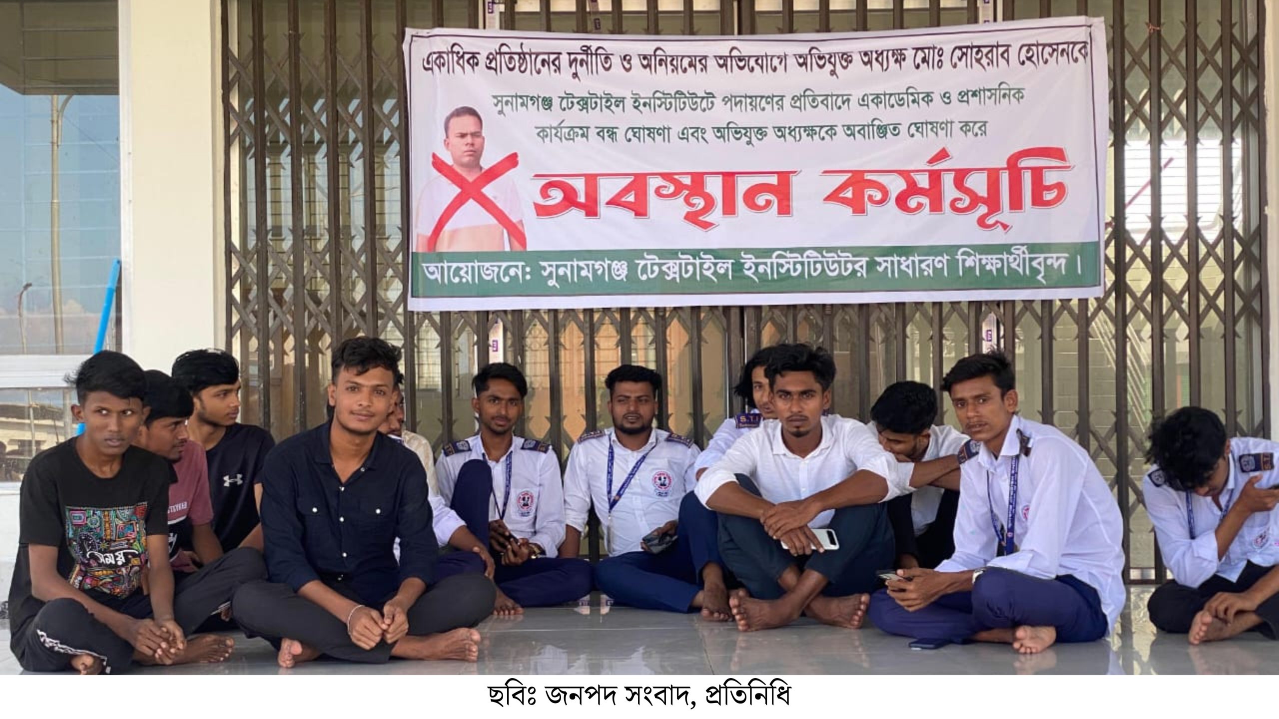 সুনামগঞ্জ টেক্সটাইল ইনস্টিটিউটের অধ্যক্ষ মো. সোহরাব হোসেনকে ক্যাম্পাসে অবাঞ্ছিত ঘোষনা করে দিনব্যাপী অবস্থান কর্মসূচি পালন করছেন প্রতিষ্ঠানটির শিক্ষার্থীরা।