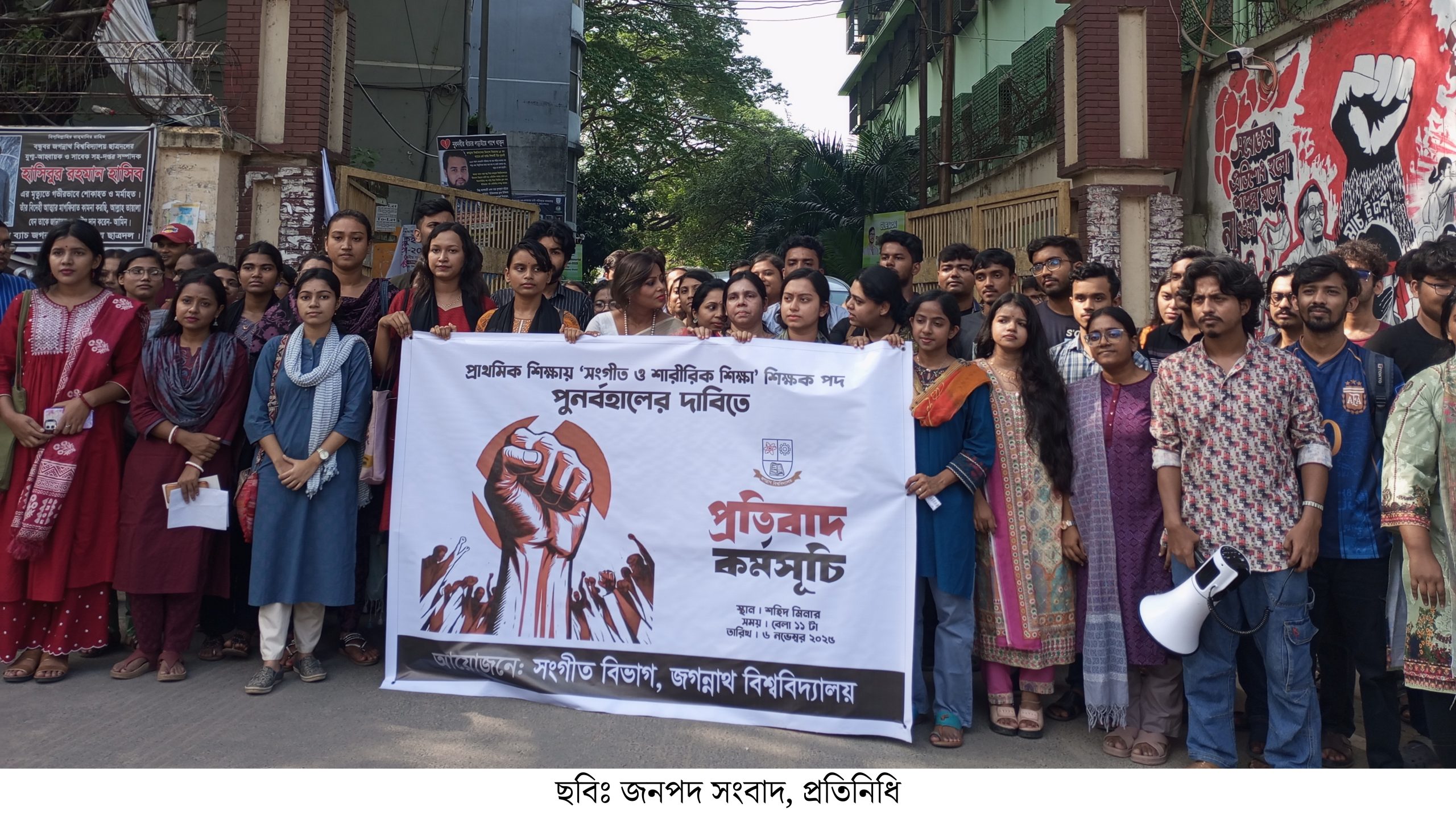 প্রাথমিকে সংগীত শিক্ষক পদ পুনর্বহালের দাবিতে জবিতে প্রতিবাদ কর্মসূচি