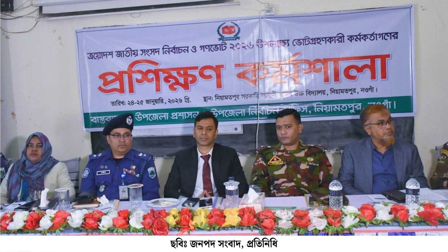 মোঃ বিদ্যুৎ হোসেন, নওগাঁ প্রতিনিধি: নওগাঁর নিয়ামতপুরে ত্রয়োদশ জাতীয় সংসদ নির্বাচন ও গণভোট ২০২৬ উপলক্ষে ভোটগ্রহণ কর্মকর্তাদের দিনব্যাপী প্রশিক্ষণ কর্মশালা