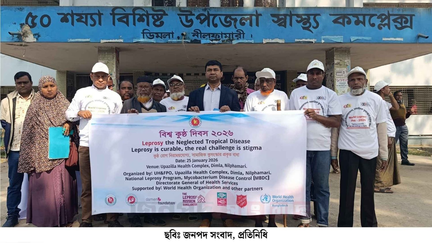 জাহিদুল ইসলাম, ডিমলা (নীলফামারী) প্রতিনিধি: নীলফামারীর ডিমলা উপজেলায় উপজেলা স্বাস্থ্য কমপ্লেক্সের উদ্যোগে ৭৩ তম কুষ্ঠ দিবস পালিত হয়েছে। উপলক্ষে রবিবার