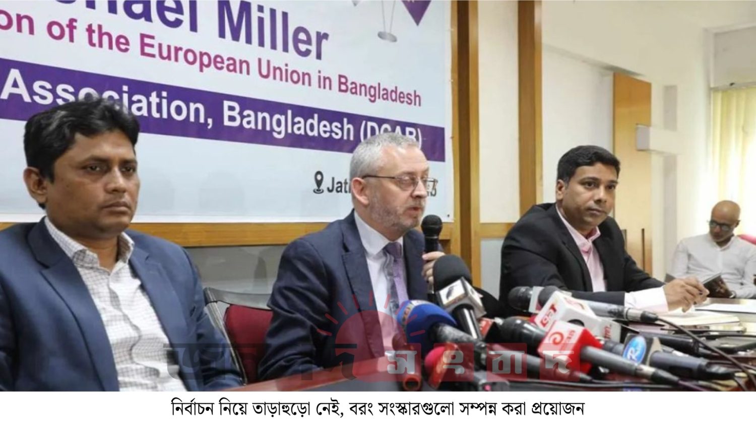 ইউরোপীয় ইউনিয়নের (ইইউ) রাষ্ট্রদূত মাইকেল মিলার বলেছেন, জাতীয় নির্বাচন কখন হবে সেটা বাংলাদেশের সিদ্ধান্ত। তবে নির্বাচনের আগে প্রয়োজনীয় সংস্কারগুলো সম্পন্ন