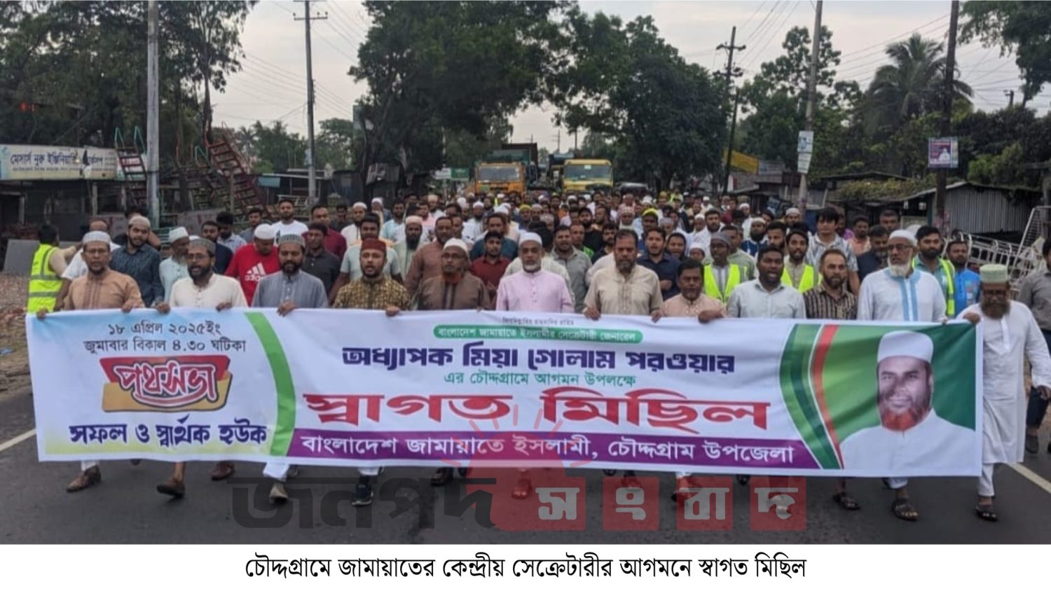 চৌদ্দগ্রাম (কুমিল্লা) প্রতিনিধি: জামায়াতের কেন্দ্রীয় সেক্রেটারী জেনারেল অধ্যাপক মিয়া গোলাম পরওয়ারের শুক্রবার বিকেলে চৌদ্দগ্রামে আগমন ও পথসভা উপলক্ষে স্বাগত মিছিল