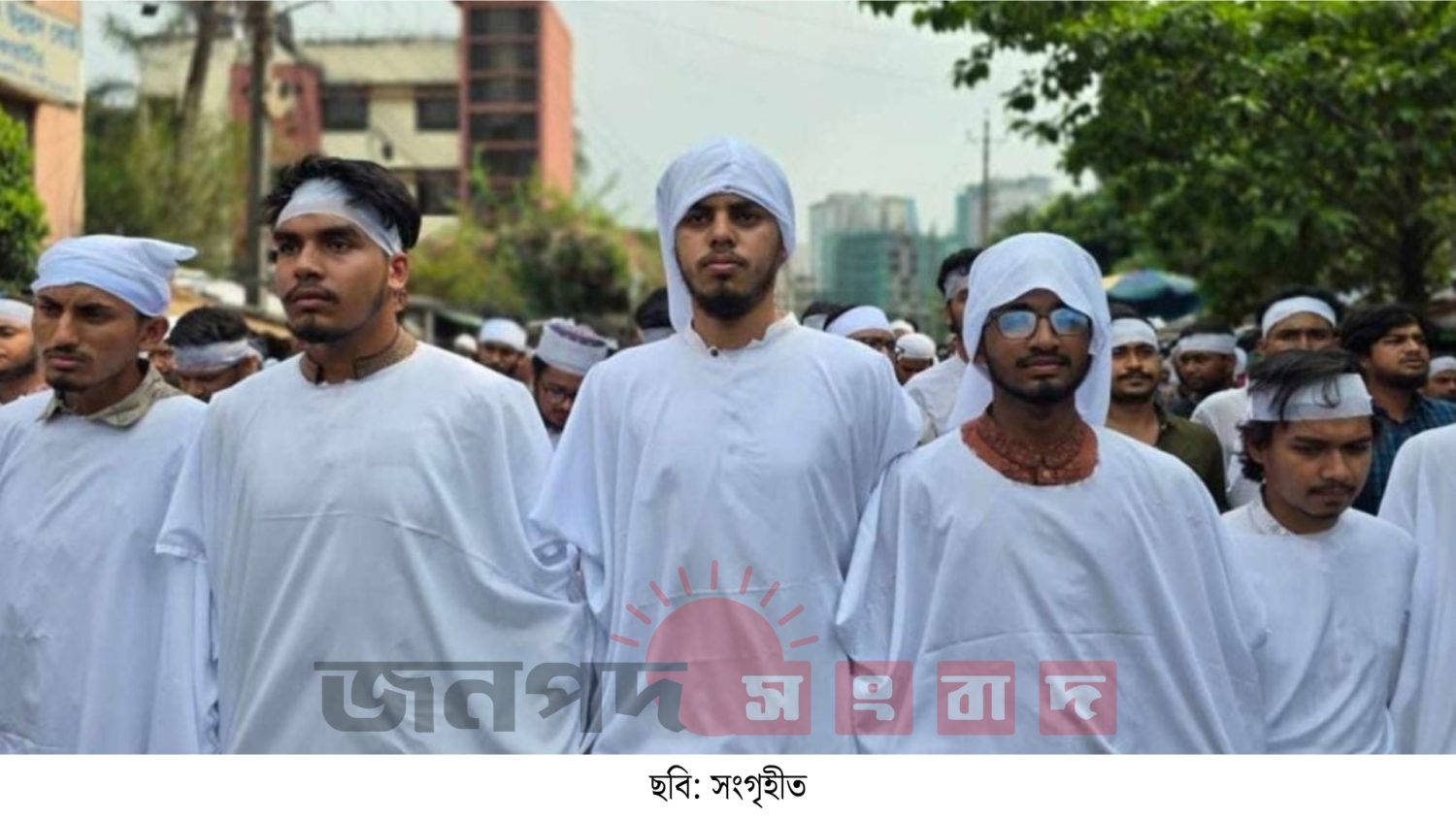 ৬ দফা দাবি আদায় ও কুমিল্লায় শিক্ষার্থীদের ওপর হামলার প্রতিবাদে কাফনের কাপড় পরে গণমিছিল করছে কারিগরি শিক্ষার্থীরা। শুক্রবার জুম্মার নামাজ