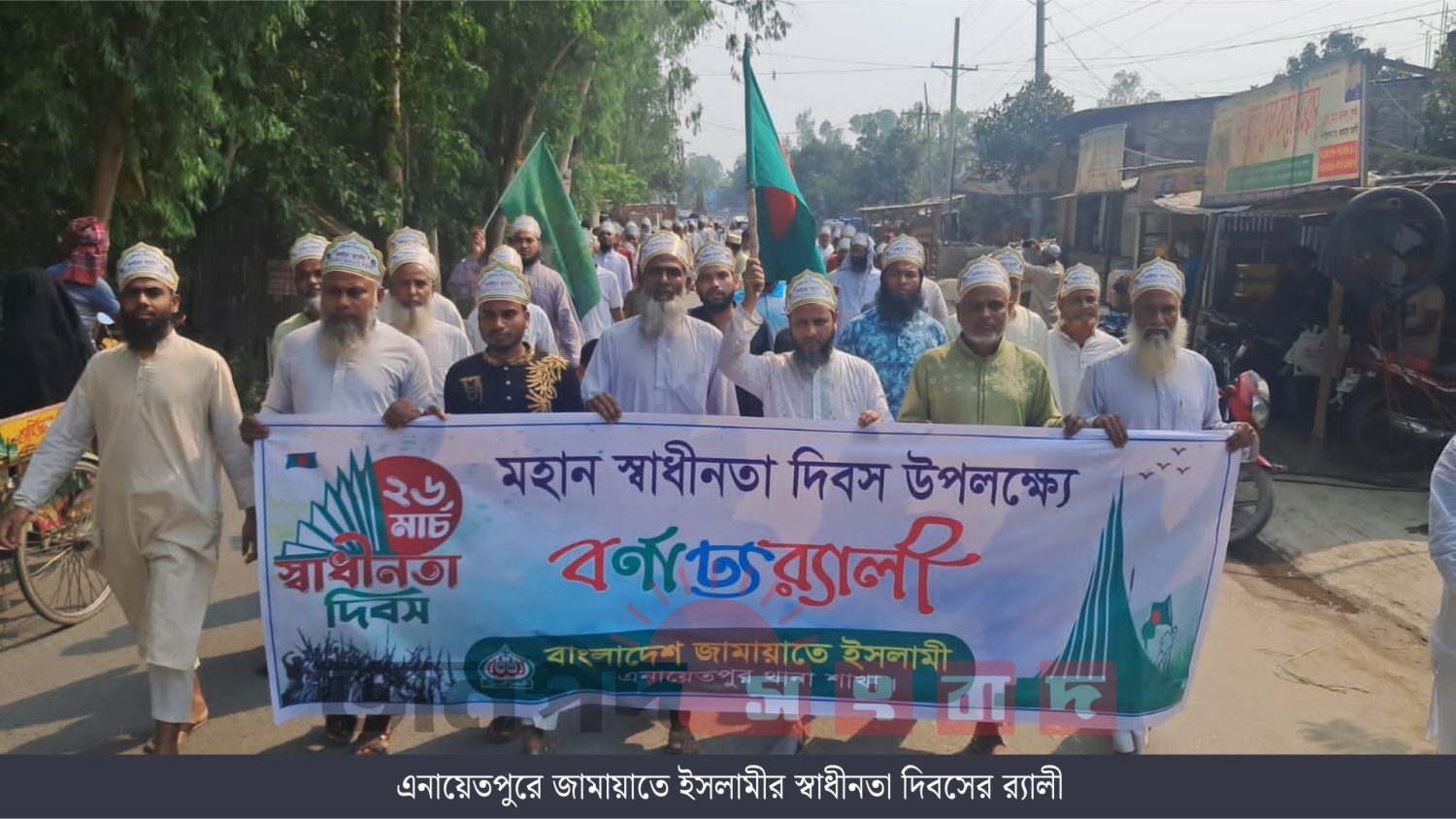 আব্দুল আওয়াল, এনায়েতপুর (সিরাজগঞ্জ): আজ মহান স্বাধীনতা দিবস উপলক্ষে এনায়েতপুরে জামায়াতে ইসলামীর উদ্যোগে বর্ণাঢ্য র্যালী অনুষ্ঠিত হয়েছে। এনায়েতপুর হাট জামে