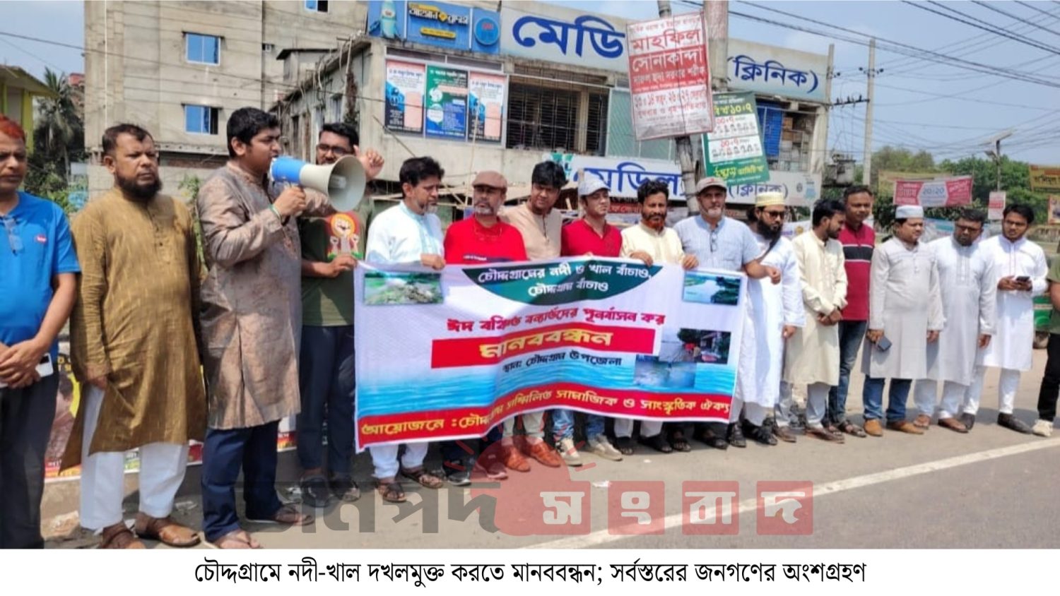 আবু বকর সুজন, চৌদ্দগ্রাম (কুমিল্লা) প্রতিনিধিঃ কুমিল্লার চৌদ্দগ্রামে খাল-বিল নদী-নালা অবৈধ দখলমুক্ত করতে মানববন্ধন করেছে চৌদ্দগ্রাম সম্মিলিত নাগরিক ও সাংস্কৃতিক